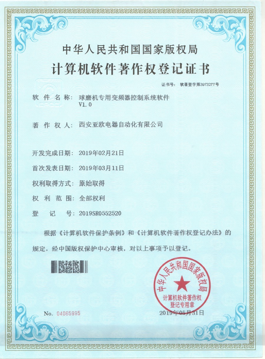 - 關于我們 - 資質榮譽 - 球磨機專用變頻器軟件著作